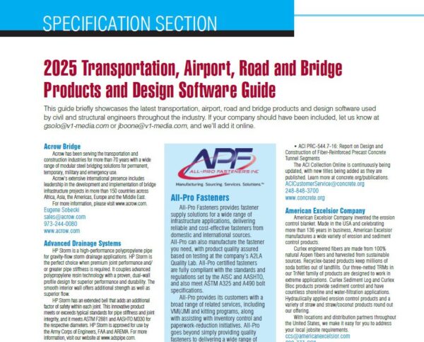 / Bridge Products and Bridge Design Software / Specification Section: 2025 Transportation, Airport, Road and Bridge Products and Design Software Guide