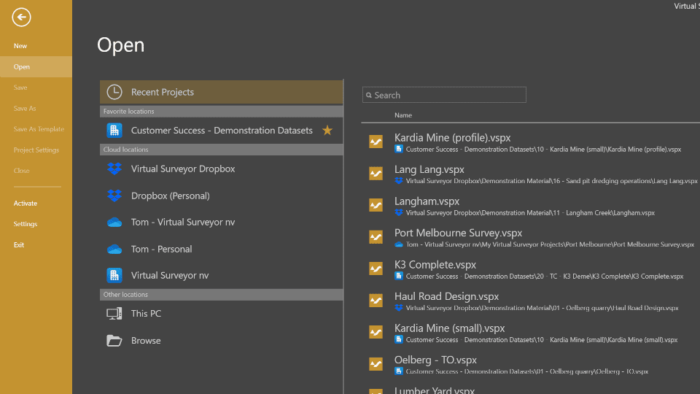 Two other new features in Virtual Surveyor V10.1 are designed to improve ease of use. Users can now add local, network, and cloud locations as Favorites Locations to make it easier to find surveying projects they work on frequently.
