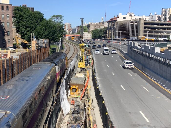 Haley & Aldrich worked with the project team to design a unique hybrid deep foundation system using every tool in the deep foundation toolbox. The foundation system included rock-socketed micropiles, drilled shafts and load bearing elements, driven piles, a secant pile wall, concrete diaphragm (slurry) wall, soldier pile and lagging walls, and internal and external bracing (tiebacks).