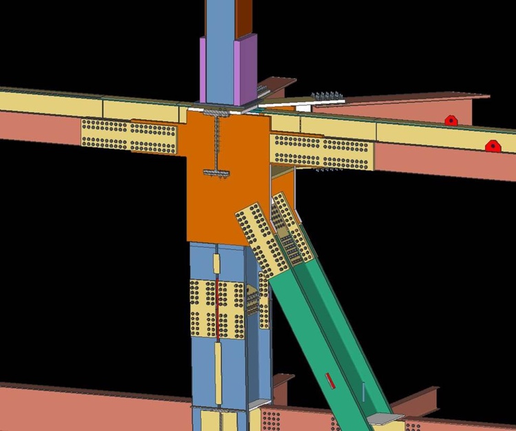 As the back-and-forth collaboration among engineers and Zalk was zeroing in on the final design, interaction between the the fabrication team and steel erector, Chicago Steel LLC, began to intensify. Fabrication models from SDS/2 were shared with Chicago Steel throughout the process to ensure constructability. Using the SDS/2 viewer, the erector could review and comment on the planned fabrication.