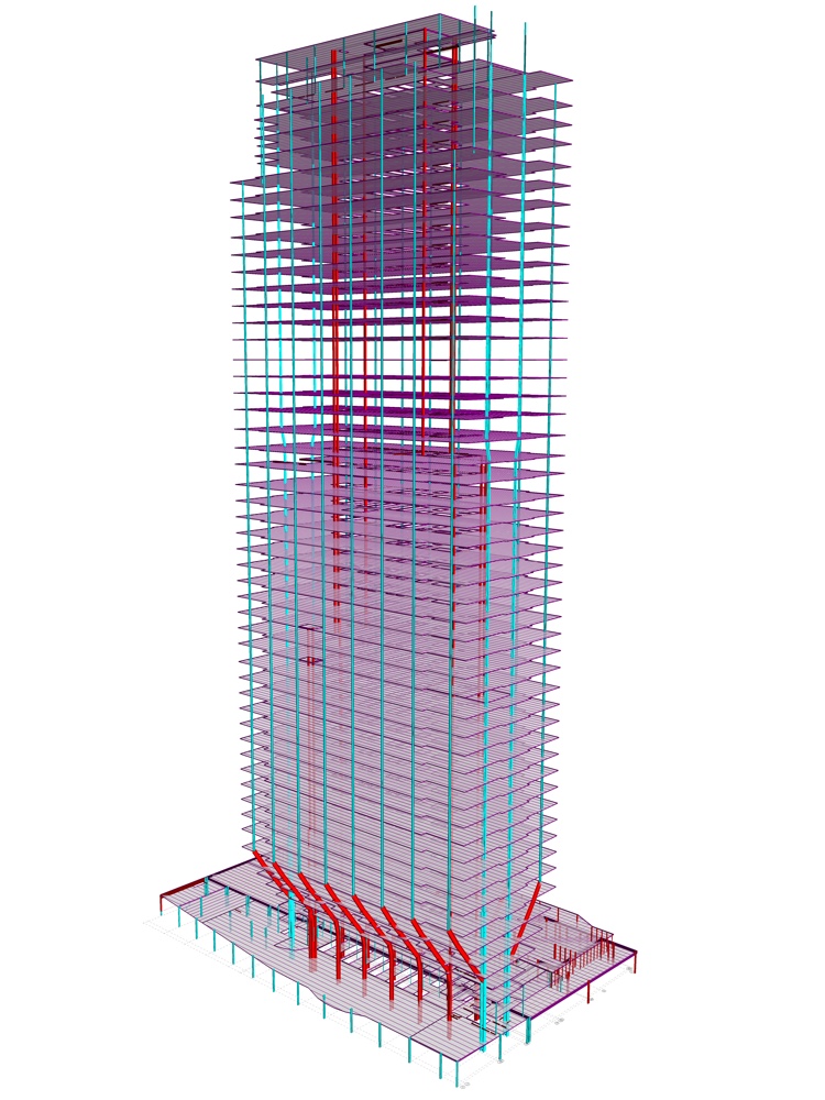 Another significant hurdle was figuring out how to design and build a 54-story building to fit on a postage-stamp-sized lot. According to Rob Chmielowski, PE, SE, principal with structural engineering firm Magnusson Klemencic Associates (MKA), “a typical building of this size requires a core roughly 45 feet wide. The design also had to meet the developer’s needs to maximize the rental square footage. We have a lot only 85 feet wide, so we needed a different structural system.”