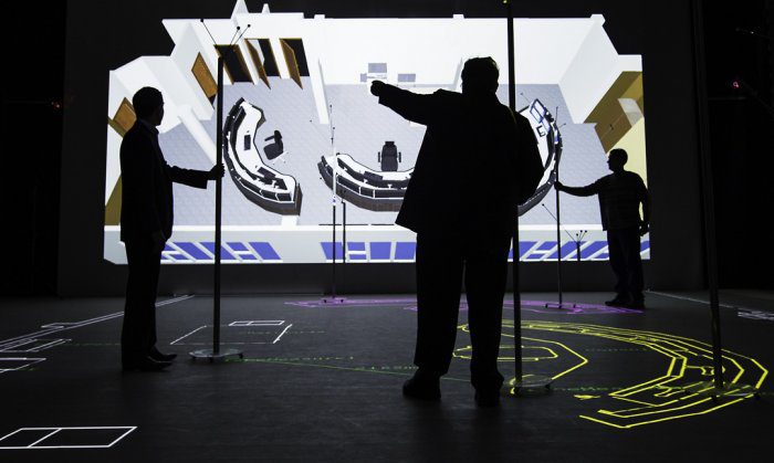 Building upon a regular Computer Aided Design (CAD) plan, the patented CADwalk system uses software to display an image of a room on to a large wall screen and project the floor plan on to the floor in actual size.