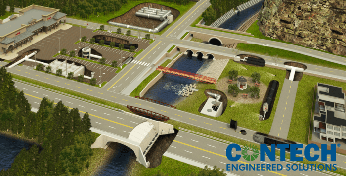 Contech® Engineered Solutions is a leading provider of site solutions for the civil engineering industry. Contech is the only company that can provide bridge, drainage, erosion control, retaining wall, sanitary, soil stabilization and stormwater solutions on a national scale. Our product offering includes corrugated metal and plastic pipe; steel truss, metal plate and concrete arch bridges and structures; hard armor, geogrid, geotextiles, block and retaining wall systems; and stormwater detention/retention, filtration and treatment systems. Our product portfolio is based on more than a century of research and practical field experience serving the highway, drainage, sewage and site-improvement markets. To contact one of Contech’s 50 offices or 300 sales and product professionals nationwide, visit www.ContechES.com or call 800-338-1122.