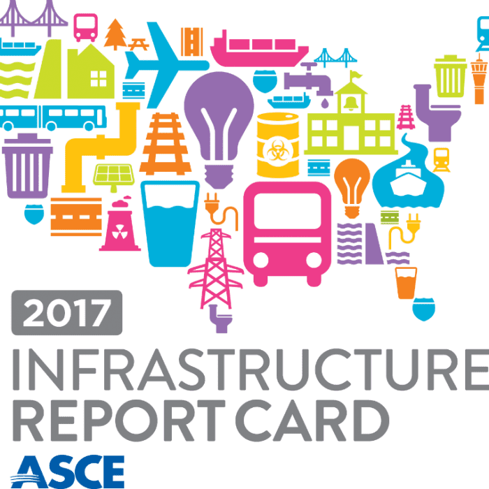 Every four years, the American Society of Civil Engineers’ Report Card for America’s Infrastructure depicts the condition and performance of American infrastructure in the familiar form of a school report  card—assigning letter grades based on the physical condition and needed investments for improvement.