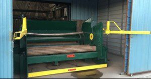 Wire Roller Machine safety upgrades include replacing the rear safety bar with adjustable swing safeties, replacing the cumbersome wire roll center post with adjustable pin centering devices, and adding an infrared interlock to the back of the machine to trigger automatic shutoff if an employee comes too close to the back of the machine.