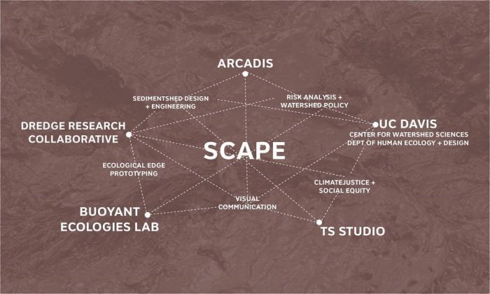 The team is led by SCAPE Landscape Architecture and includes Dredge Research Collaborative, TS Studio, the UC Davis Department of Human Ecology and Design, the UC Davis Center for Watershed Sciences, and Buoyant Ecologies Lab.