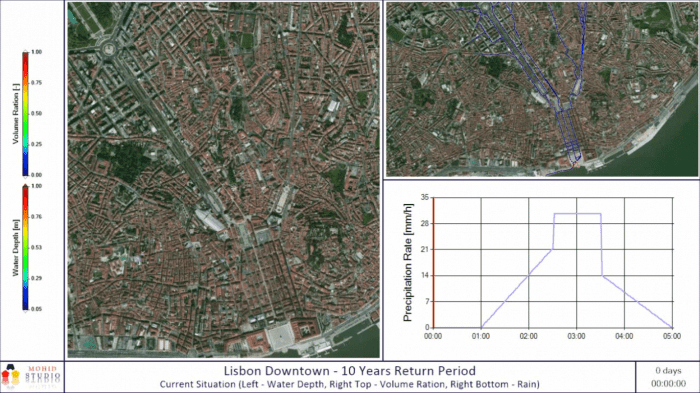 Action Modulers was founded in 2004. Established with strong, and maintained, connections to the University of Lisbon’s School of Engineering – Instituto Superior Técnico – the research & development team has built a strong reputation for expertise in applying numerical modeling tools to complex water situations including: flooding from overflowing drainage systems; environmental impacts of pollutants distributed by waterflow, tides, and winds; operational flood early warning systems for valuable resources. The ACTION Modulers team are regular participants in European Union funded research projects.