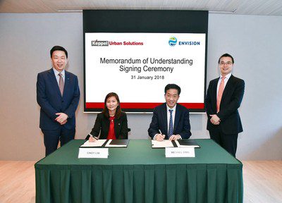 SINGAPORE, February 2, 2018 – Keppel Urban Solutions Pte. Ltd., a wholly-owned subsidiary of Keppel Corporation Limited, and Envision, a global leading smart energy management company, have signed a non-binding Memorandum of Understanding (MOU) that will see both companies leverage each other’s expertise and resources to further the global push for new and clean energy, and smart cities.