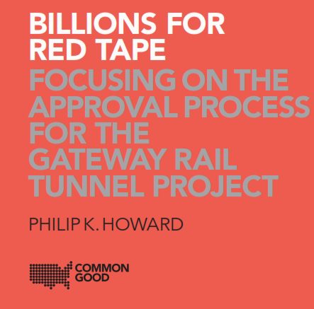 8     See, e.g., Philip K. Howard, “Billions for Red Tape: Focusing on the Approval Process for the Gateway Rail Tunnel Project,” Common Good, May 2016, available at: https://commongood.3cdn.net/e68919da002c4300cd_bzm6bxnb9.pdf.