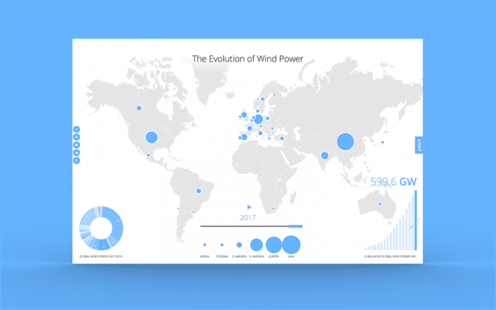 The Evolution of Wind Power is the result of a cooperation between The Global Wind Energy Council (GWEC) and renewable energy software company Greenbyte. The interactive map reveals the cumulative installed capacity per country, continent and the world between 1981-2018. Let’s take a closer look at the figures and see what has happened in the past twelve months.