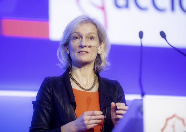 “Zanny Minton Beddoes, Editor-in-Chief, The Economist delivers the keynote speech of the Global Water Summit 2018 at the Marriott Conference Rive Gauche Hotel & Conference Center, Paris”