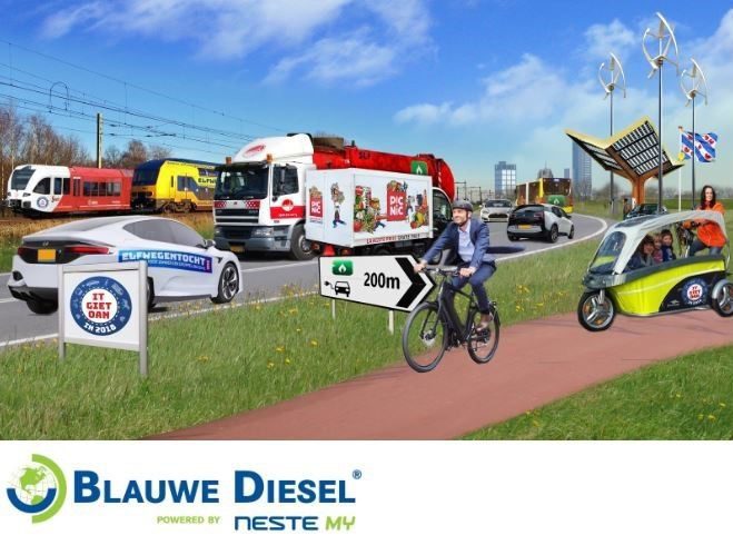The Elfwegentocht is a two-week-long event in July in which citizens of the province Friesland in the Netherlands will travel fossil-fuel-free. Friesland is the first province to offer 100% renewable diesel at local fuel stations. The renewable diesel is called Blauwe Diesel powered by Neste MY. Blauwe Diesel is a sustainable and renewable alternative to conventional diesel that cuts greenhouse gas emissions by up to 90% and enables reductions in engine-out emissions.
