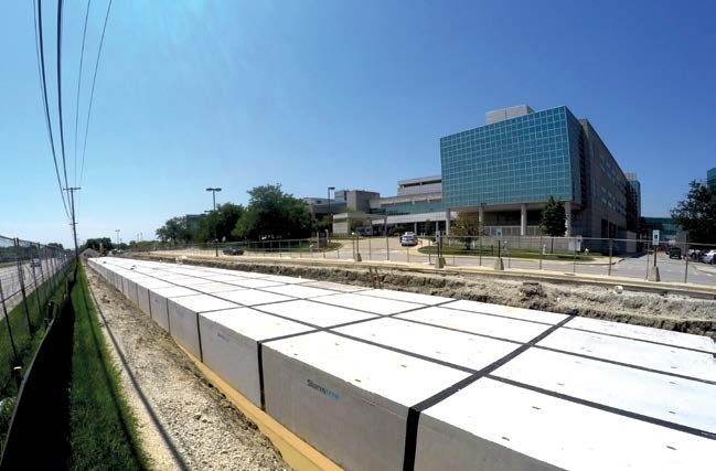 The Phase 1 StormTrap stormwater detention vault was installed adjacent to 1st Avenue, which is the primary access to LUMC.