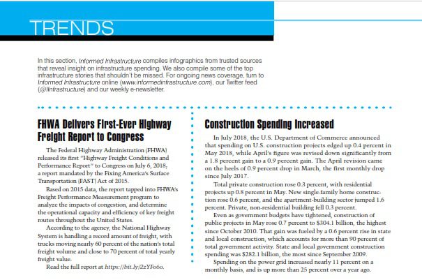 In this section, Informed Infrastructure compiles infographics from trusted sources that reveal insight on infrastructure spending. We also compile some of the top infrastructure stories that shouldn’t be missed. For ongoing news coverage, turn to Informed Infrastructure online (www.informedinfrastructure.com), our Twitter feed (@IInfrastructure) and our weekly e-newsletter.