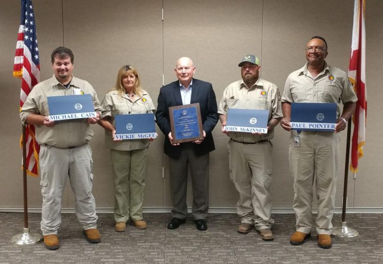 Alabama Welcome Center staff members John McKinney, Michael Cain, Vickie McGee and Paul Pointer were recognized as Employees of the Quarter for ALDOT’s North Region during a ceremony at the central office in Montgomery.