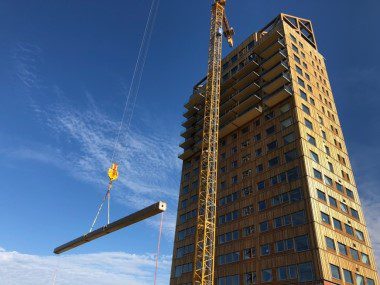 When the final beam was put in place on the Mjøstårnet in September, the building reached a height of 85.4 meters, and is therefore the world’s tallest timber building. The tower, with its 18 floors, is helping to set new standards for both height and construction methods for timber buildings. Moelven has recently noticed a significant shift towards the use of timber in large constructions.