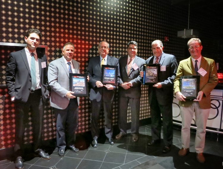 The LiRo Group has won five of ENR New York magazine’s 2018 Regional Best Projects Awards for the New York/New Jersey region for the Niagara Falls State Park rehabilitation, Irish Hunger Memorial renovation, Jacobs School of Medicine and Biomedical Sciences at the University at Buffalo, Phase II of Hunter’s Point South Infrastructure and Waterfront Park, and Medical & Research Translational (MART) building and Hospital Pavilion at The State University of New York at Stony Brook. The award for the Irish Hunger Memorial renovation was won jointly by LiRo and CTA Architects. Left to right: The LiRo Group Landscape Architect Jonathan Grubman, Senior Associate Vice President James Eckhoff, Associate Vice President Stephen Burke, Senior Project Manager Andrew Schuler, and Vice President Frank Franco, and CTA Architects Principal Daniel Allen.