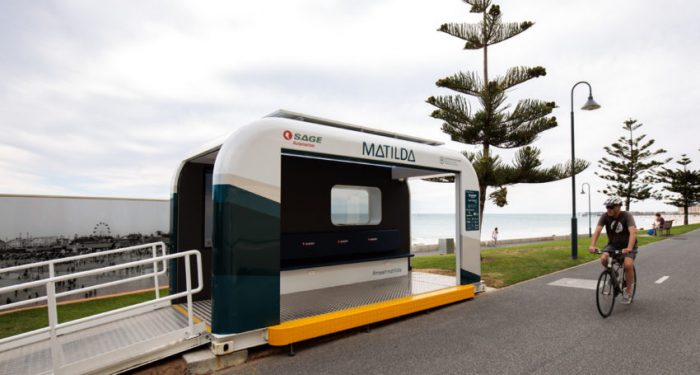 The six-month trial runs 900m along a busy foreshore walkway in Glenelg, a seaside suburb of Adelaide, between a hotel and a popular kiosk. A Matilda hub at each end of the route allows users to book the free ride, see where the shuttle is, and ask Matilda about the local area, or even for a joke.