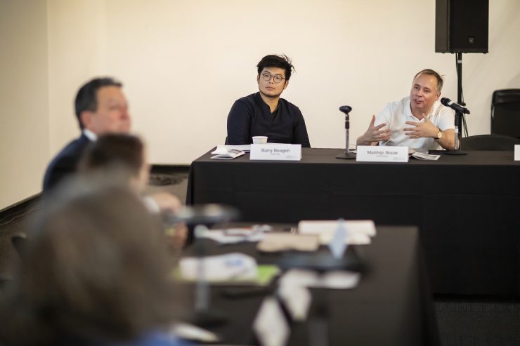 Bouw kept the day’s conversation rolling with an overview of the new certificate program, which will offer professional graduate students an understanding of how to “design with risk” when facing an uncertain future. “We need to be bold and modest at the same time,” he said.