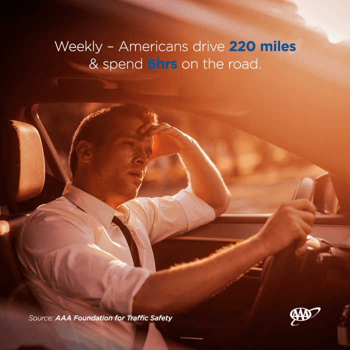 DENVER (March 5, 2019)  – If you think you’ve been spending more time in your car lately, you’re right: Each week, Americans spend 20 more minutes driving than they did in 2014. That’s the takeaway from new research from the AAA Foundation for Traffic Safety, which found that Americans collectively spend 70 billion hours behind the wheel each year â€“ an eight percent bump over 2014. The average driver travels more than 220 miles each week, or 11,498 miles each year. That’s the equivalent of two roundtrip drives from San Francisco to Washington, D.C.