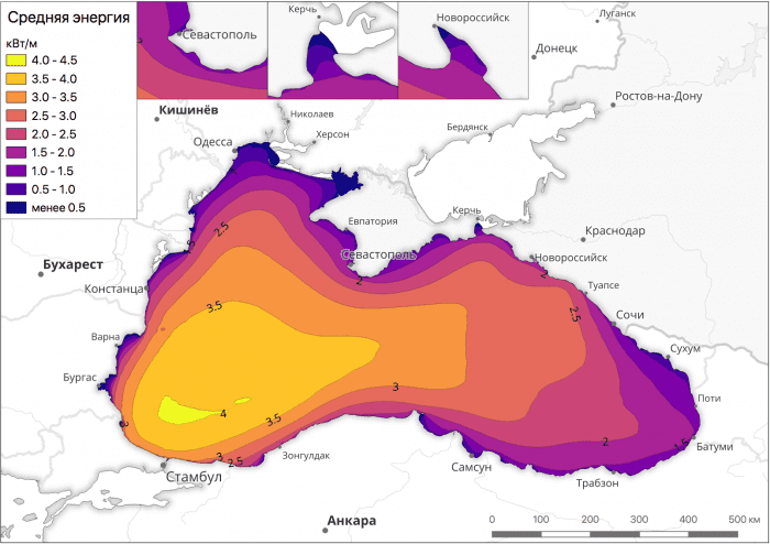 Wave energy distribution in the Black Sea(above)