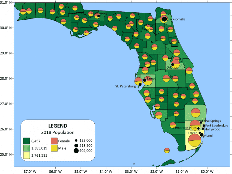 Create pie charts in Surfer showing proportions of attribute data for each feature (Above Image)