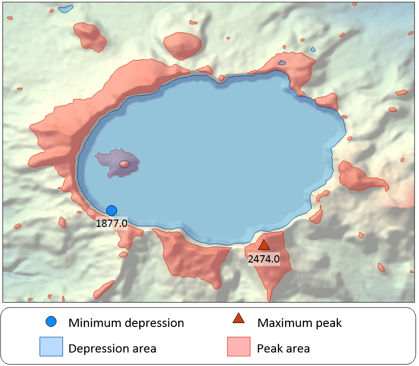 Peaks and Depressions can be mapped, colorized and annotated automatically in the latest release of Surfer.