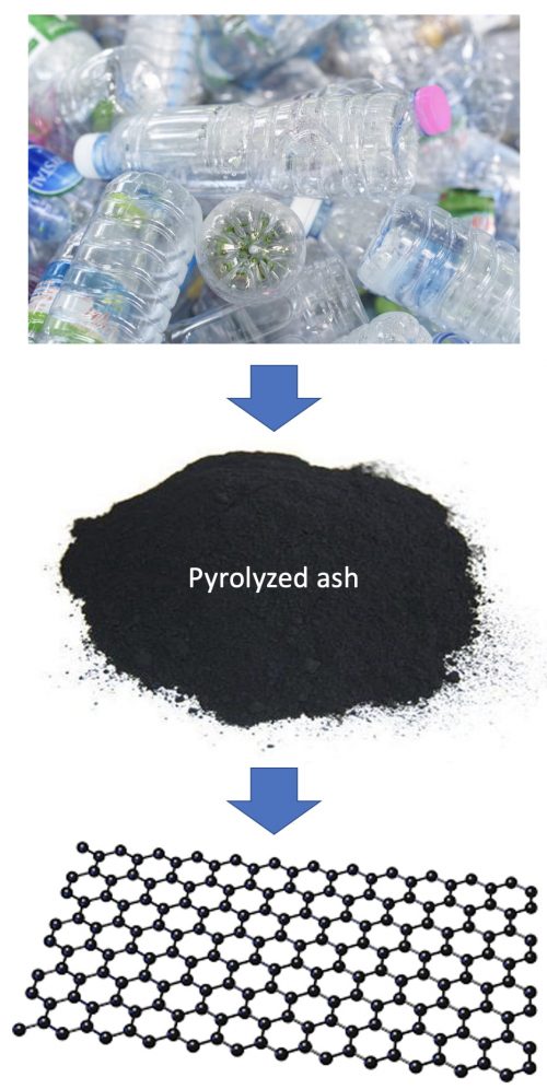 “This work enhances the circular economy for plastics,” Tour said. “So much plastic waste is subject to pyrolysis in an effort to convert it back to monomers and oils. The monomers are used in repolymerization to make new plastics, and the oils are used in a variety of other applications.  But there is always a remaining 10% to 20% ash that’s valueless and is generally sent to landfills.