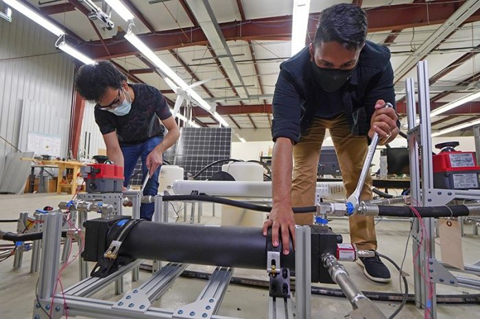 Warsinger’s lab has used this double-acting batch development to fuel several new advances in desalination. Abhimanyu Das, a Purdue Ph.D. student in mechanical engineering, has published research describing a variant of the process called “batch counterflow reverse osmosis.” By recirculating certain concentrations of water on both sides of the membrane, Das’ process is shown to be the most energy-efficient desalination process for high-salinity water, while requiring fewer components. And Purdue master’s student Michael Roggenburg has published research showing that a combination of batch reverse osmosis and renewable energy could conceivably deliver fresh water to the entire 1,954-mile border between the U.S. and Mexico.
