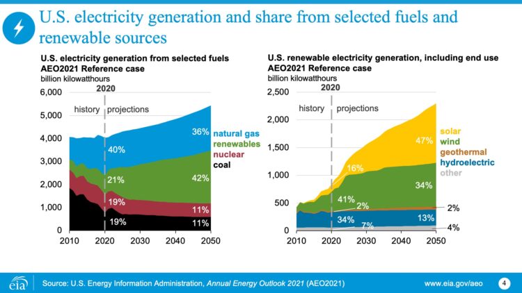 The United States is undergoing a transformation in how electricity is generated. The U.S. Energy Information Administration (USEIA) reports that in 2020 electricity generated from renewable energy comprised about 21 percent of the nation’s total. This proportion is expected to double to 42 percent during the next three decades (see Figure 1). Further, USEIA reports that within the renewable-energy sector, electricity generated from solar is expected to grow from its current proportion of 16 percent to nearly 50 percent during the same timeframe. Power from utility-scale solar comprises the bulk of this growth (see Figure 2).