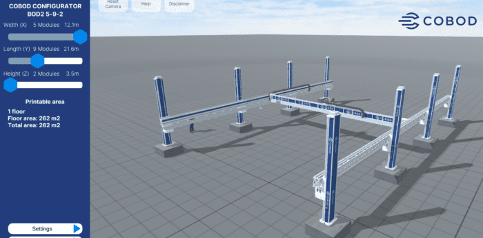 The COBOD configurator showing a BOD2 model 5-9-2, as will be send to Fortex, Australia in Q4 this year. Source: www.Fortexsolutions.com.au