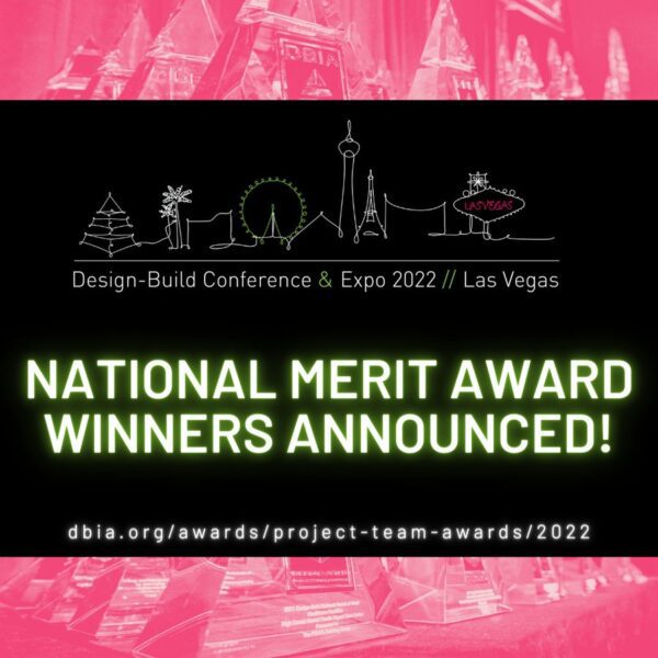 DBIA’s 2022 award-winning projects and teams were evaluated by a distinguished panel of industry experts. Each of these Merit Award winners will now go on to compete for a National Award of Excellence and Project of the Year to be announced at DBIA’s Design-Build Conference & Expo Awards Ceremony in November in Las Vegas, NV.