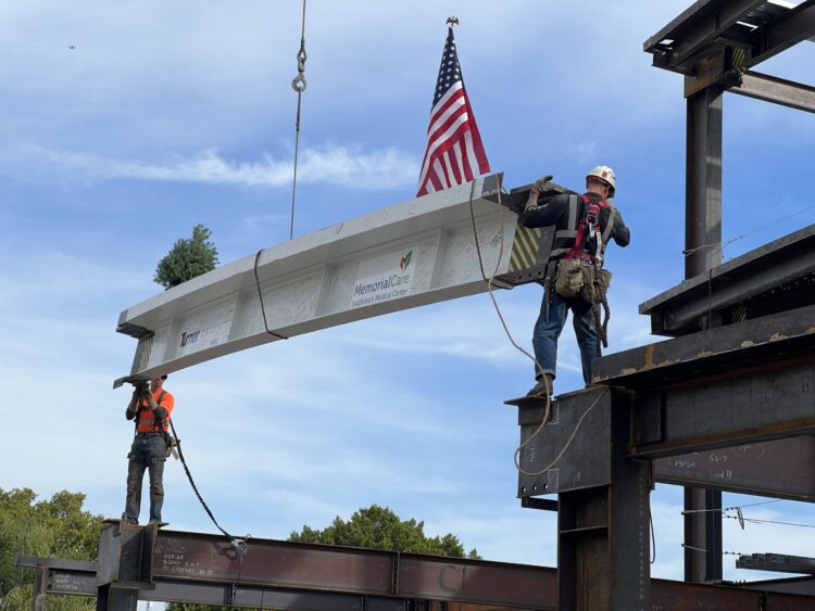 MemorialCare executives, donors and staff gathered at the construction site today and celebrated the next phase in construction. As part of the topping out ceremony, attendees were invited to sign the final beam before it was placed on the building. Taylor and Sarah Nederlander of the Harry J. Nederlander Foundation were also on-site. The sisters donated $2.5 million to facilitate the new Sarah & Taylor Nederlander Breast Center, which will allow MemorialCare to offer easy access to screenings, diagnostics, and expedited screening results, and will nearly double the number of patients served each year.