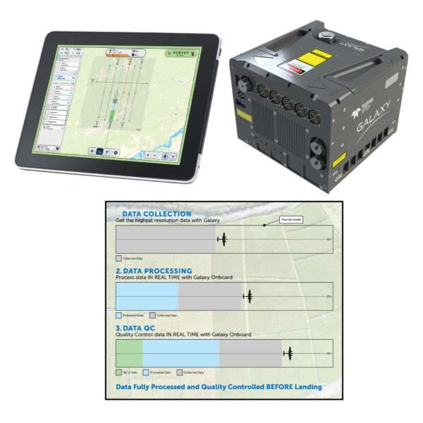 Comprised of a rugged onboard computer, with a state-of-the-art real-time processing engine and quality control system, Galaxy Onboard extends the lidar sensor into a full solution that accelerates workflow from airplane to office and instills organizational confidence in data integrity.