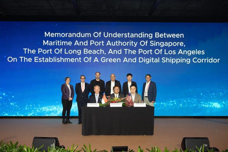 Representatives from the Maritime and Port Authority of Singapore, Port of Long Beach, and Port of Los Angeles today signed a memorandum of understanding to establish a green and digital shipping corridor to fight climate change and accelerate the decarbonization of international shipping.