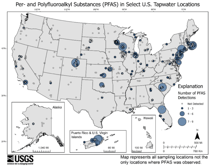 USGS estimates at least 45% of tap water could have one or more PFAS