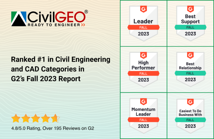 CivilGEO Ranked #1 in Civil Engineering and CAD Categories in G2’s Fall 2023 Reports