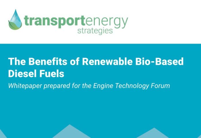 WASHINGTON (October 16, 2023) — The Engine Technology Forum announces the release of the white paper Benefits of Renewable Bio-Based Diesel Fuels developed by Transport Energy Strategies, a leading consultancy on global transport energy issues. Renewable biobased fuels, such as biodiesel and renewable diesel, are a proven and available strategy for immediately reducing greenhouse gas and other emissions. This is true in both new, and existing, diesel engines across all applications. The paper provides a foundation of information about biobased diesel fuels, their production, consumption, future growth, and volume potential. It also includes approved uses, benefits and acceptance by diesel engine and equipment makers. The paper also discusses key policy considerations for maximizing the benefits from these fuels.