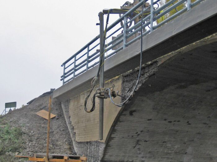When tasks extend beyond flatwork, contractors often resort to scaffolding and hand tools to reach surfaces on the girders, parapet or under the edge of the bridge. An extension kit offers improved versatility by extending the Hydrodemolition robot’s reach 8.2 feet (2.5 meters) below the robot’s tracks. The extension kit allows for about a 13-foot (4-meter) working width — side to side and up and down — for a wider surface removal.