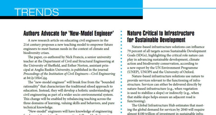 A new research article on educating civil engineers in the 21st century proposes a new teaching model to empower future engineers to meet human needs in the context of climate and biodiversity crises.