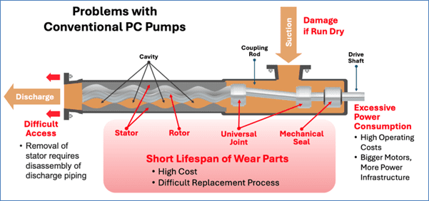 Despite these advantages, conventional PC pumps have gained a reputation for difficult and frequent maintenance, high lifecycle costs, and inefficient power consumption. Consequently, industry professionals sometimes opt for alternative solutions, even if it means sacrificing performance.
