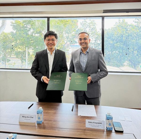 NanoSun Managing Director Mr Wong Ann Chai with Croda Singapore Managing Director Mr Babu Alagappan, at a Letter of Intent signing ceremony.