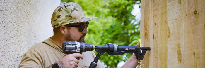 - Quik Drive® Project Pro™ Screw Driving Tool: This auto-feed screw driving tool attaches easily to nearly any cordless drill or driver for fastening decks, fences, porches and flooring up to four times faster than using traditional drivers alone.