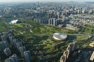 Given its rectangular footprint and startlingly verdant, sylvan hilliness amid densely clustered tall buildings, Hangzhou’s new Canal Asian Games Ecopark invites comparison to New York City’s Central Park, especially when seen from above. But unlike Central…