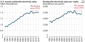 Following sustained growth through 2010, U.S. residential electricity sales have declined in both absolute and per capita terms. Although changes in the…