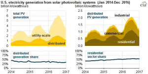 Generation from small-scale photovoltaic (PV) systems totaled about 37% of the annual generation from all U.S. solar PV electricity generators in 2016. EIA’s small-scale category includes PV systems that have less than one megawatt (MW) of generating capacity.…