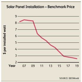 As concerns about the effects of climate change have increased and the global economy has slowly began to shift away from fossil fuels, investments in solar power have ramped up and led to significant price drops. In fact, IBISWorld estimates that the average…