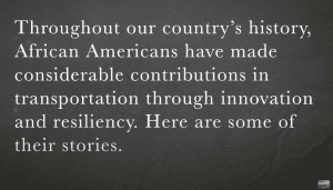 Throughout our country’s history, African Americans have made considerable contributions in transportation through innovation and resiliency. Here are the stories of Elbert R. Robinson, Garret A. Morgan, Granville T. Woods and Carmen E. Turner-- African…