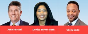 Denise Turner Roth succeeds John Porcari as U.S. Advisory Services president; and veteran strategist Corey Dade joins firm as vice president of communications.…