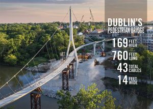 A pedestrian and bicycle bridge will span the Scioto River in the heart of Dublin connecting the future Riverside Crossing Park on the east side of the…